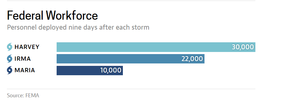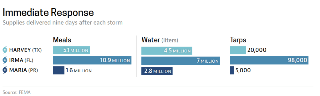 Despite all of this, FEMA’s response lagged in Puerto Rico5: